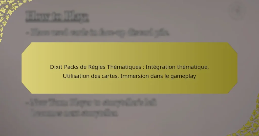 Les meilleurs packs de règles maison thématiques pour Dixit améliorent le gameplay en intégrant des thèmes et des mécaniques uniques qui élèvent l’expérience. Les packs populaires se concentrent souvent sur des récits ou des styles artistiques spécifiques, offrant aux joueurs des moyens variés de s’engager avec le jeu.